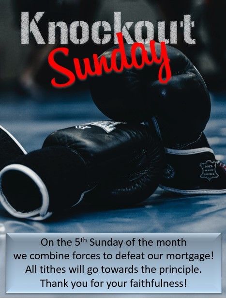 January is a knockout Sunday month. As of today because of your faithfulness we have already paid down $74,404.47 (since April 2019).