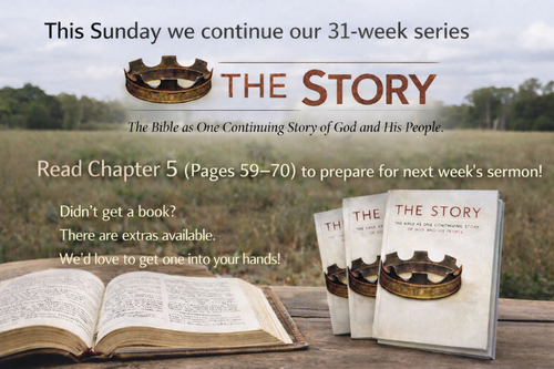 As we continue our journey through The Story, we encourage you to read Chapter 5 (pages 59–70) to prepare for next week’s message..
